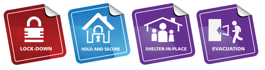 | Hold and Secure | Hold and Secure is used in response to security threats or criminal activity outside the school. During a Hold and Secure, all entrance doors to the school are locked, with no one permitted in or out of the building. No one, other than law enforcement, is permitted access to the building until the Hold and Secure has been cleared. |